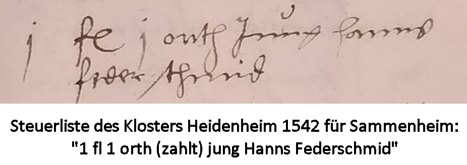 Älter als die Kirchenbücher sind in unserem Land die Steuerlisten. Und in solch einer Liste des Klosters Heidenheim aus dem Jahre 1542 wird ein „jung Hanns Federschmid“