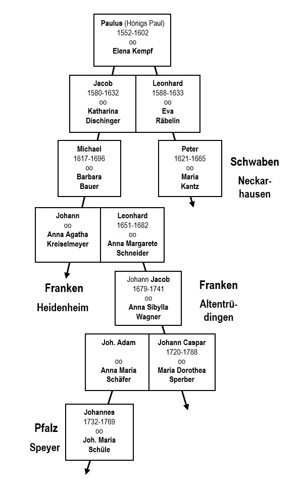 die fränkische Heimat und wanderte als Tuchmacher nach Schwaben aus. In Neckarhausen (heute ein Stadtteil von Nürtingen) begründet er die große